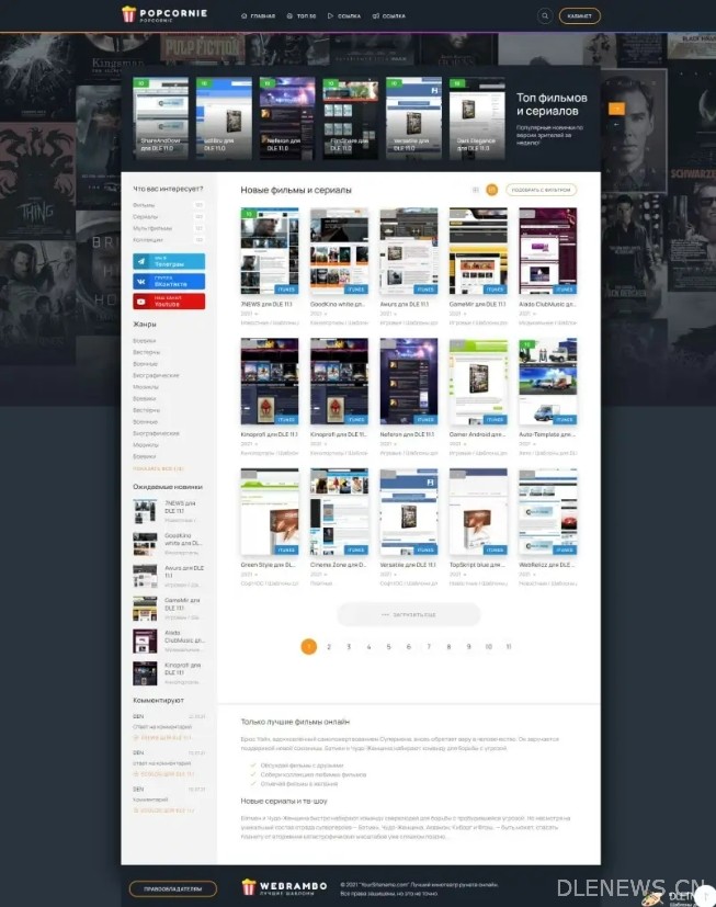 使用适用于 DLE 16.1 的 Popcornie 电影模板创建您自己的虚拟影院。让您的访客在完美的环境中享受电影世界。